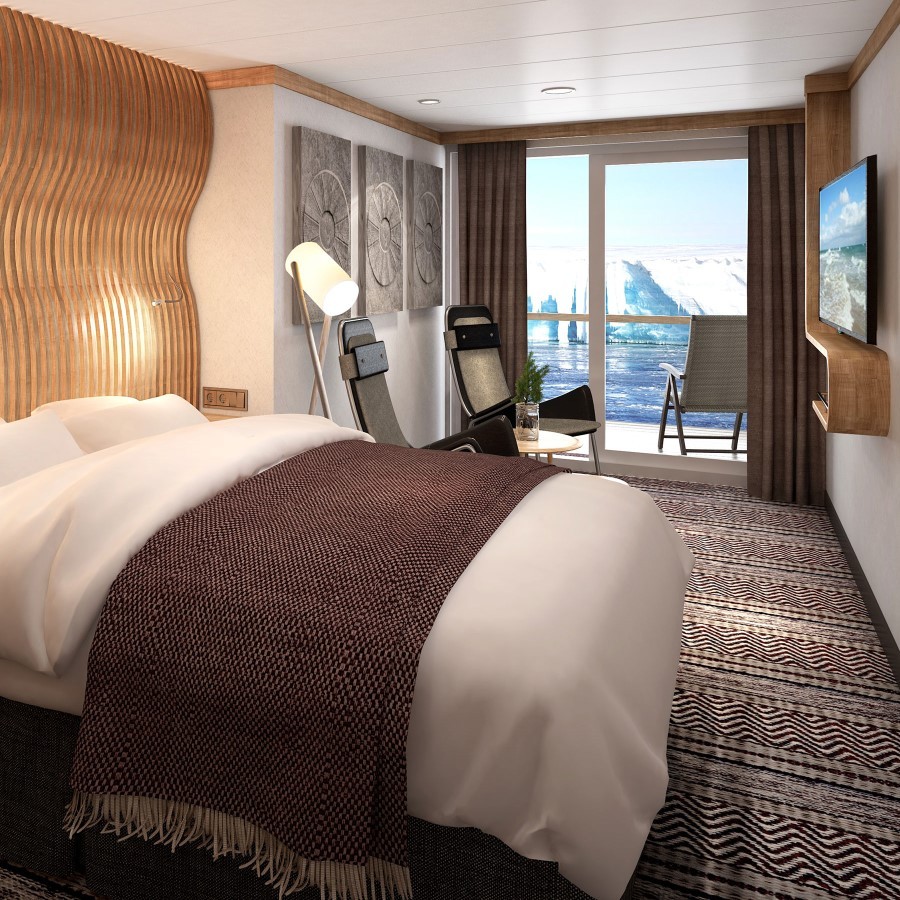 Arctic Superior class cabins are comfortable and roomy accommodation and most have balconies. Flexible sleeping arrangements, sofa beds, TV and other features make this one of our most popular categories. Our Arctic Superior concept includes an amenity kit, kettle, tea and coffee. Can accommodate two to four passengers.