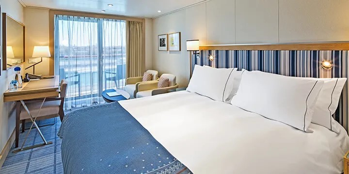 Stateroom size: 270 sq ft (includes private veranda) Ocean-view stateroom with floor-to-ceiling sliding glass door opening to full-size veranda 11 AM Embarkation 2 PM stateroom access Priority shore excursion reservations 67 days prior to departure. (Voyages embarking before May 31, 2024) Priority shore excursion reservations 107 days prior to departure. (Voyages embarking on or after June 1, 2024) 1 priority reservation at each alternative restaurant 60 days prior to departure Priority spa treatment bookings 60 days prior to departure King-size Viking Explorer Bed (optional twin-bed configuration) with luxury linens & pillows Free Wi-Fi (connection speed may vary) 42" flat-screen TV featuring MSNBC, FOX News, National Geographic and more 110/220 volt outlets & USB ports Large private bathroom with spacious glass-enclosed shower, heated floor, anti-fog mirror & hair dryer Premium Freyja® toiletries Plush robes & slippers Direct-dial satellite phone & cell service Security safe Individual climate control Purified water refilled daily Mini-bar with soft drinks, water & snacks (replenished once daily) Binoculars Traditional Norwegian Marius-weave blanket Personal coffee machine with premium coffee & tea selections Stateroom steward & twice-daily housekeeping 24-hour room service Under-bed suitcase storage space Spacious drawers & closet with wooden hangers